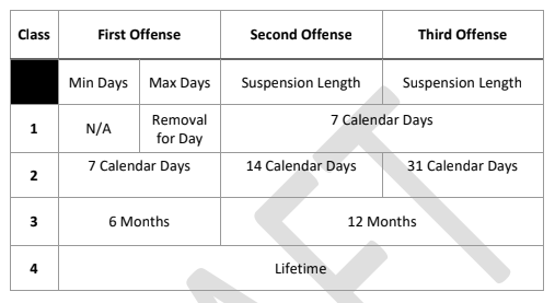 For the purpose of this Park Suspension and Appeal Policy, prohibited behavior shall include, but